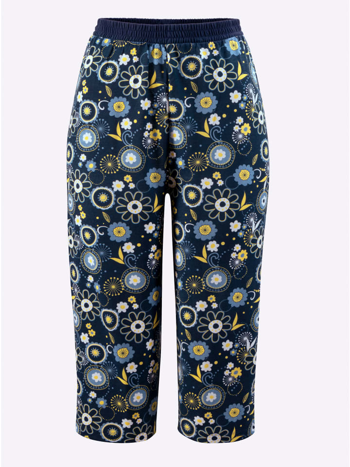 Пижамные брюки с привлекательным принтом, модная длина капри, с контрастным эластичным поясом. Одинарный трикотаж.