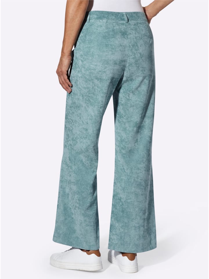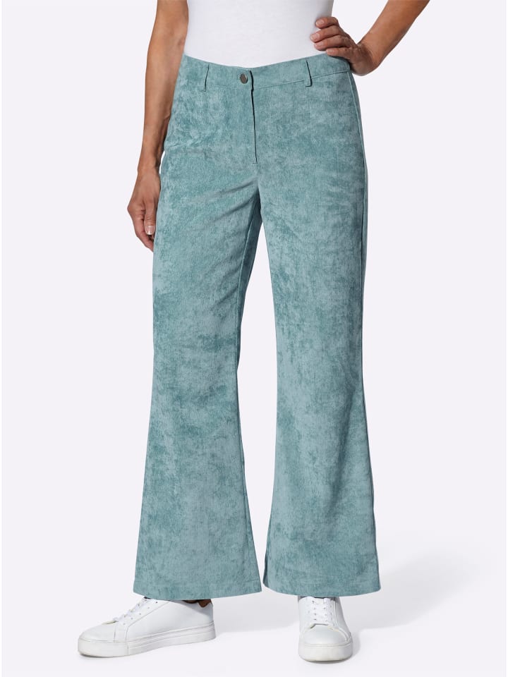 Ищете новые любимые брюки? Нашли! Модные вельветовые брюки модной ширины с расклешенными штанинами. Со шлевками для ремня и застежкой на пуговицу и молнию. Ширина до щиколотки примерно 58 см. Без ремня.