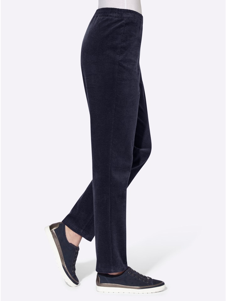 Мягкие, уютные, чудесные - эти брюки из вельвета сочетают в себе все эти качества. Эластичный пояс по всему периметру с гладким поясом для большей свободы движений. Предварительно расположенные боковые швы. Ширина до щиколотки примерно 36 см.