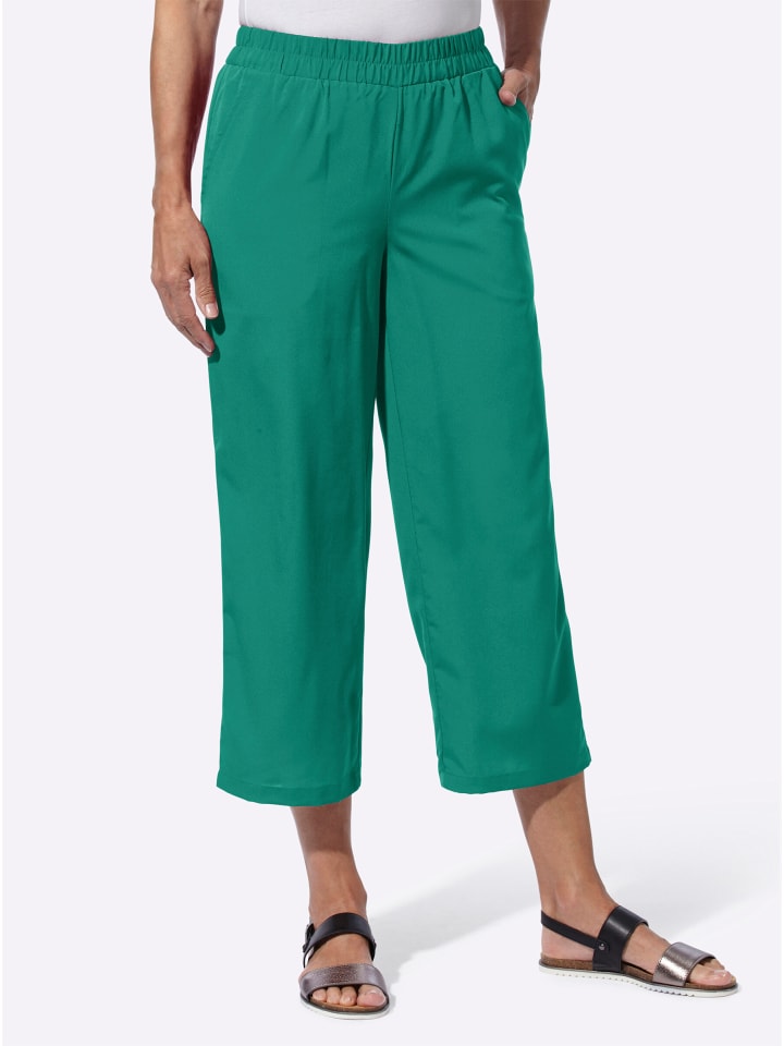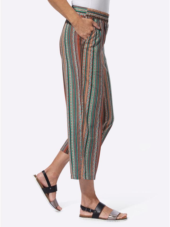 Эти брюки - два стильных компаньона в одном! Одни однотонные, а другие с этническими полосками. Удобный пояс на резинке по всему периметру и модный свободный крой. Два практичных кармана.