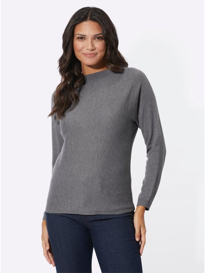 Свитер летучая мышь из меланжевой ткани модного непринужденного силуэта. Круглый вырез горловины и ребристые манжеты на длинных рукавах. Мягкая смесь вискозы и кашемира приглашает к объятиям.