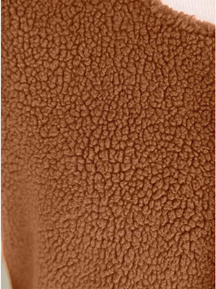 Модный и пушистый жилет-тедди с круглым вырезом. С формирующими нагрудными вытачками и застежкой на крючки и петли.