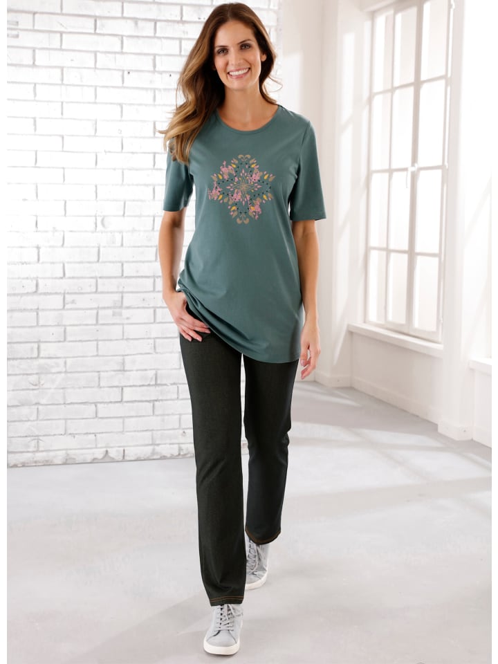 Изюминка этих повседневных брюк: джинсовая ткань придает им суперстильный вид, а не делает их похожими на удобные или спортивные брюки. Они отличаются фирменной контрастной строчкой, поясом на резинке по всему периметру и двумя передними карманами.