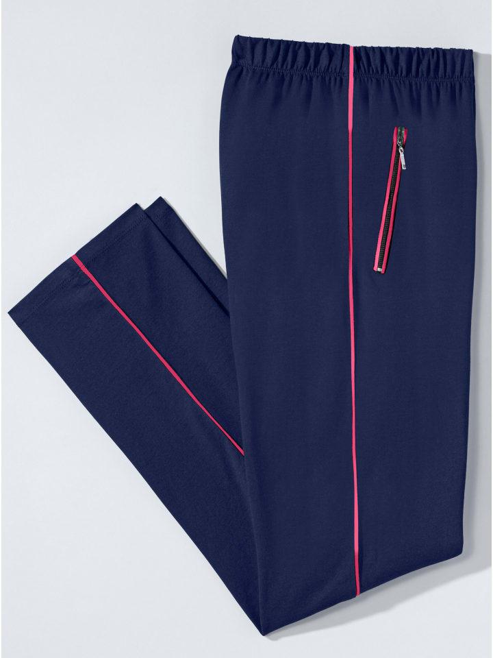 Идеально подходят как для спорта, так и для отдыха: эти брюки для отдыха с поясом на резинке по всему периметру и двумя передними карманами на молнии. Контрастная окантовка и полоски придают особый шарм. Высококачественный трикотаж.
