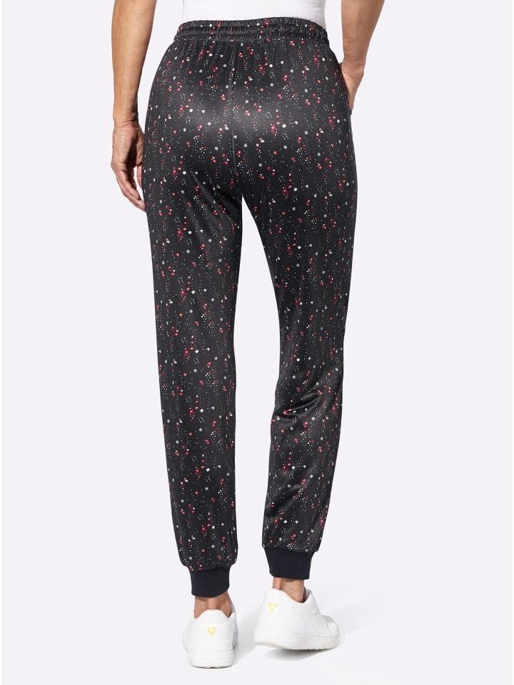 Спортивные брюки для отдыха с высокой степенью эластичности. Современный принт, в том числе на эластичном поясе со шнурком. Эластичные манжеты на щиколотках не сползают. 2 кармана.