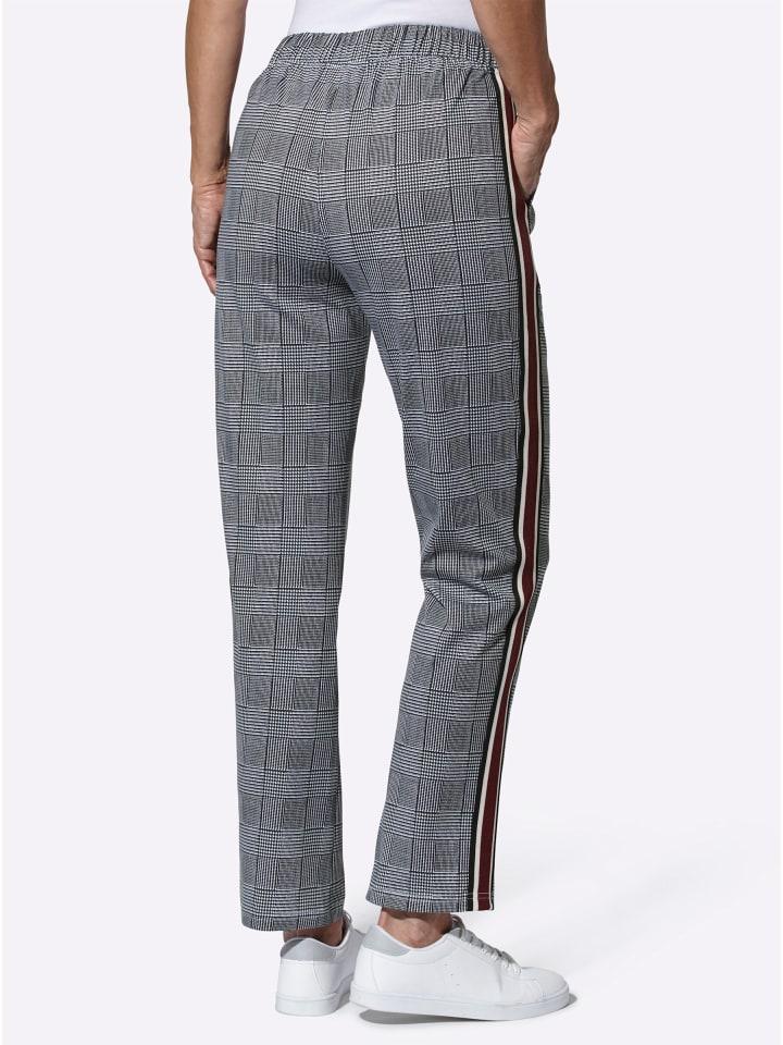 Клетка? Конечно! Особенно, как в этих повседневных брюках, она сочетается с визуально удлиняющими контрастными декоративными лентами по боковому шву. Удобный пояс на резинке по всему периметру и приятный к телу трикотаж обеспечивают дополнительный комфорт. Два боковых кармана.