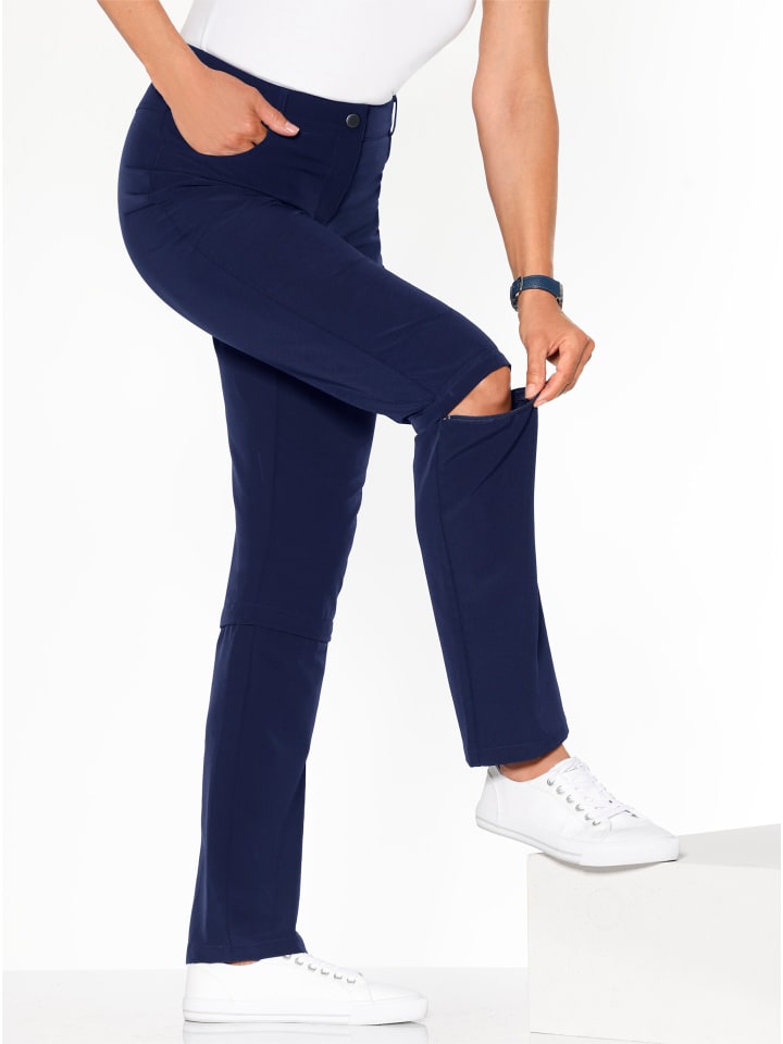 Расстегиваются в мгновение ока! С помощью молнии вы можете быстро трансформировать эти функциональные брюки из длинных в брюки до колена. Изготовлены из прочного водоотталкивающего материала. Застежка на молнию с кнопкой, шлевки для ремня и 2 кармана. С формирующими швами на уровне колена. Ширина до щиколотки примерно 38 см. Без пояса.