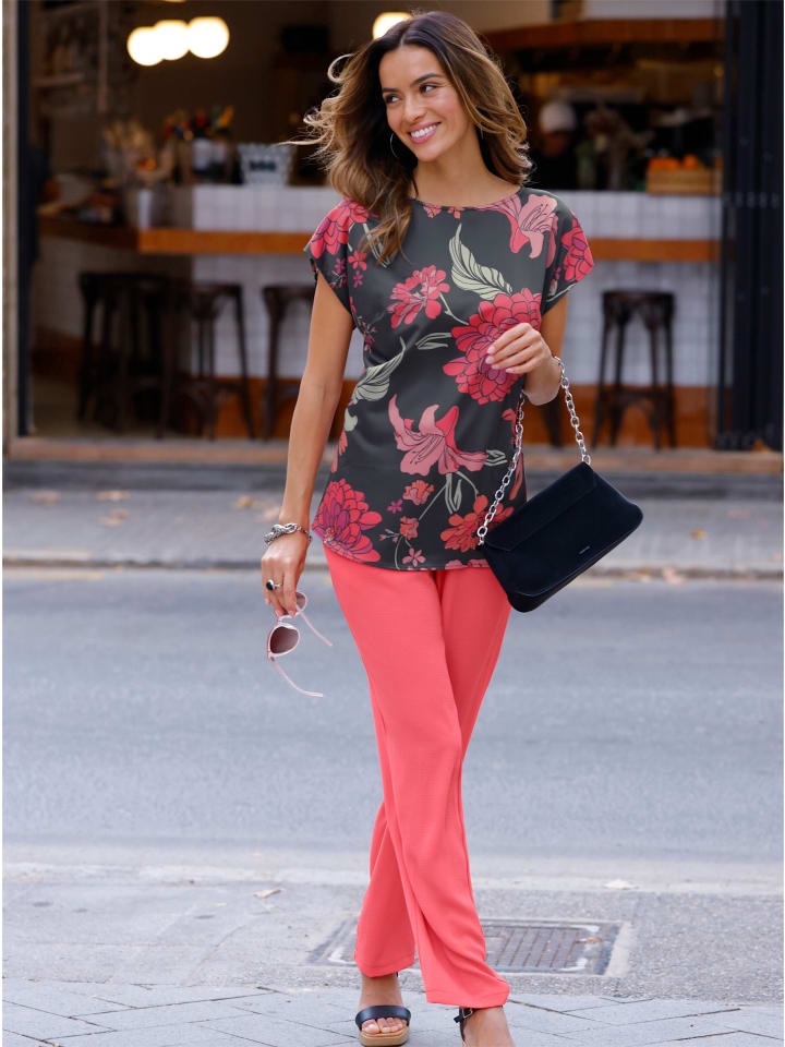 Наслаждайтесь легкостью и комфортом этих летних брюк. Декоративный пояс с боковой застежкой. Передние карманы. Ширина до щиколотки: около 42 см.