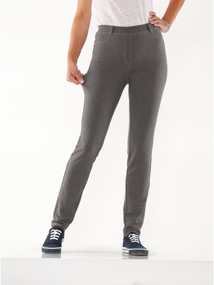 Наше чудо для хорошего самочувствия: удобные брюки в модном джинсовом стиле. С эластичным поясом по всему периметру и шлевками для ремня. Приталенная спинка и два накладных кармана. Утепленная внутренняя часть с начесом. Ширина до щиколотки примерно 30 см.