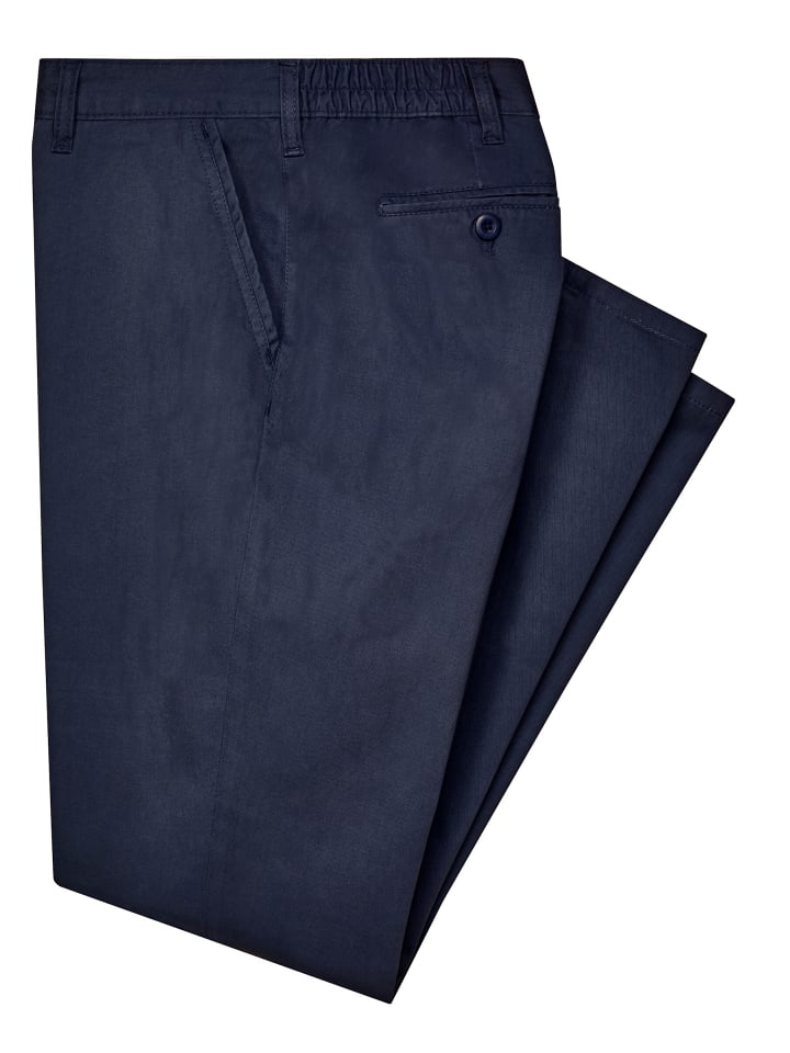 Комфорт без компромиссов: невероятно удобные брюки с эластичными боковыми вставками на поясе. 2 передних кармана и 2 задних кармана с окантовкой на пуговицах. Шлевки для ремня. Удобные и дышащие. Без ремня.