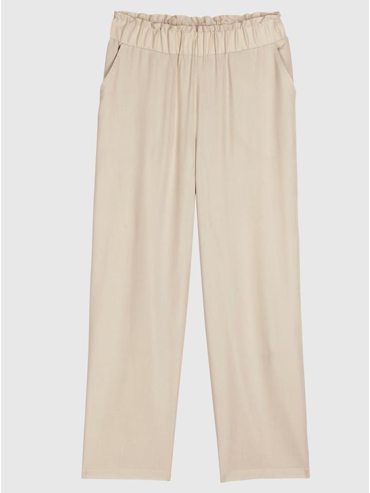 Очень широкий крой с широким, слегка гофрированным поясом на резинке придает этим брюкам длиной 7/8 модный вид. Смещенный вперед боковой шов визуально стройнит силуэт, а сзади имеются формирующие вытачки. С боковыми карманами. Изготовлены из струящейся вискозы качества ECOVERO от Lenzing. Ширина до щиколотки: около 48 см.