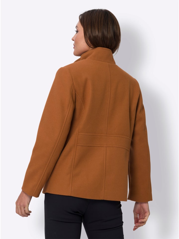 Мягкая, теплая, чудесная: в этой куртке из изысканной шерсти вы всегда будете выглядеть стильно! Стильный крой с воротником-стойкой, крупными пуговицами с роговым эффектом и рельефными швами. Два кармана в швах. Подходит для обычной зимней температуры.