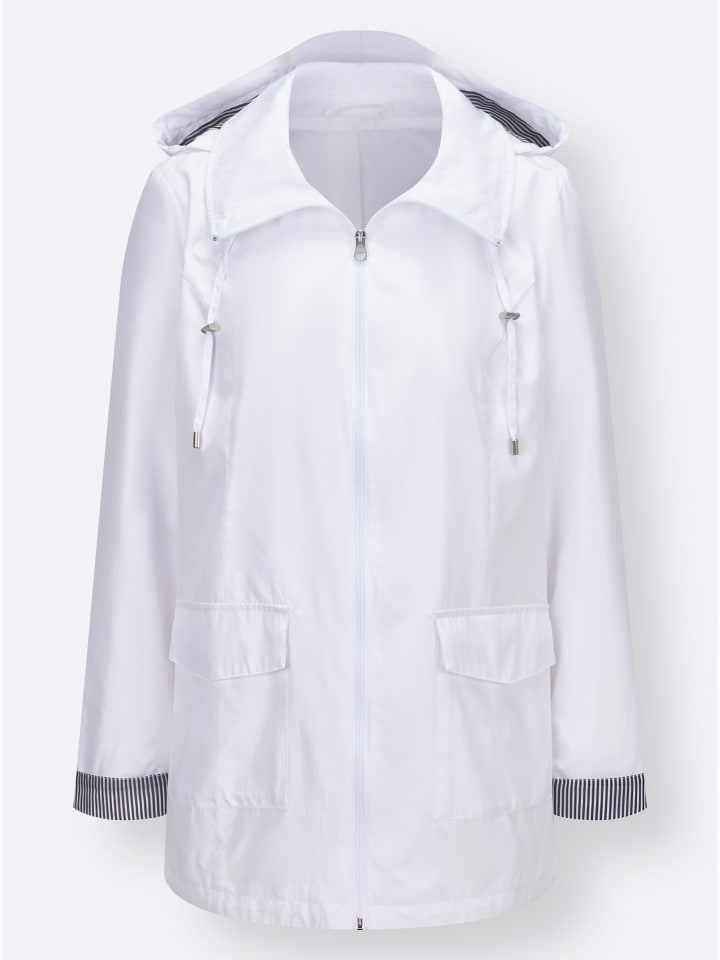 Легкая куртка с ярким полосатым узором на капюшоне с завязкой и на пристегивающихся манжетах. Отложной воротник можно превратить в защитный воротник-стойку. Застежка на молнию и два накладных кармана с клапанами. Вытачки спереди и сзади для идеальной посадки.