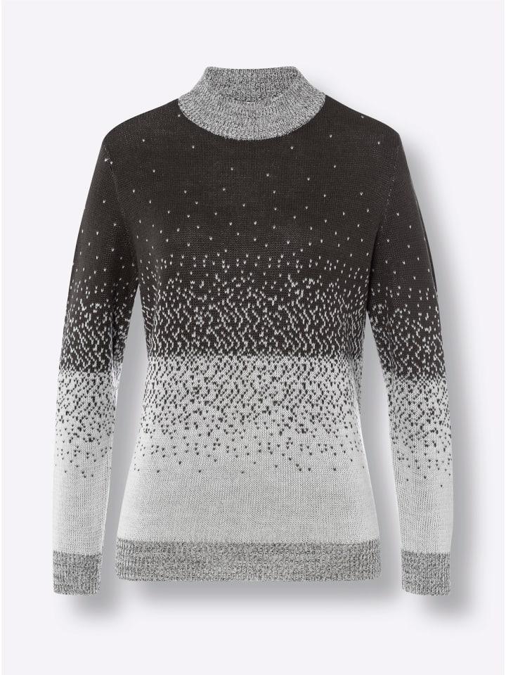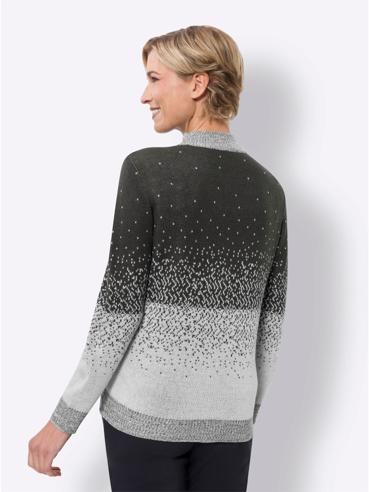Этот жаккардовый свитер - поистине уникальный модный аксессуар благодаря особому узору вязки с легким переходом цвета. Он дополнен привлекательным воротником-стойкой и отделкой в рубчик.