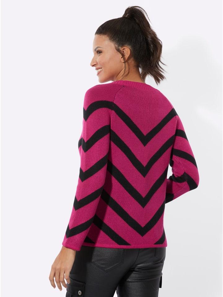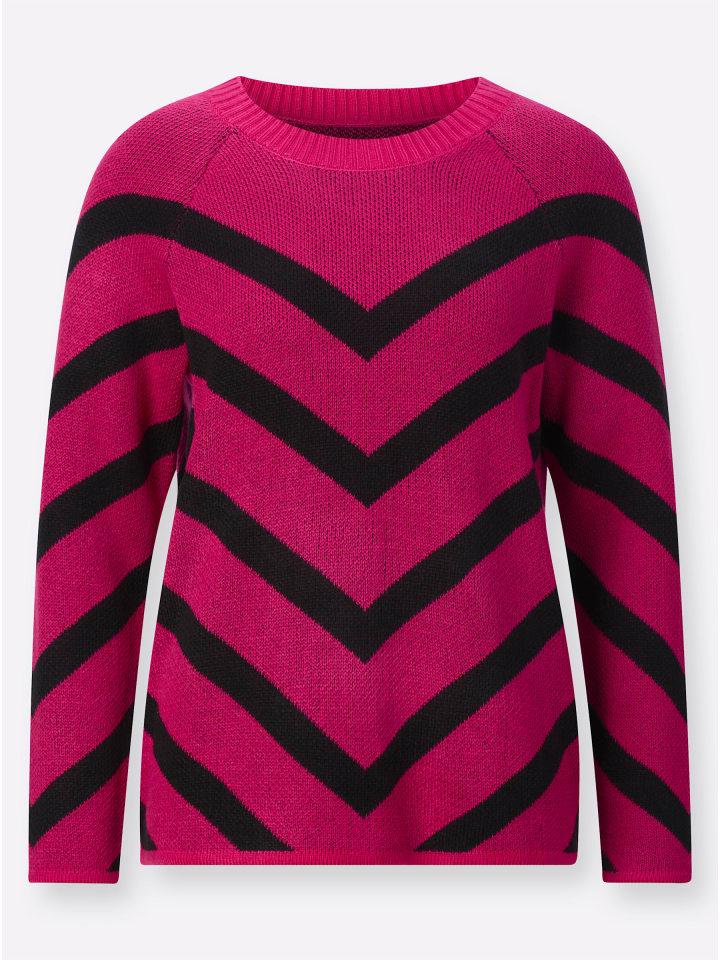 Очень мягкий! Длинный свитер с V-образным жаккардовым узором в полоску. Круглый вырез горловины отделан резинкой.