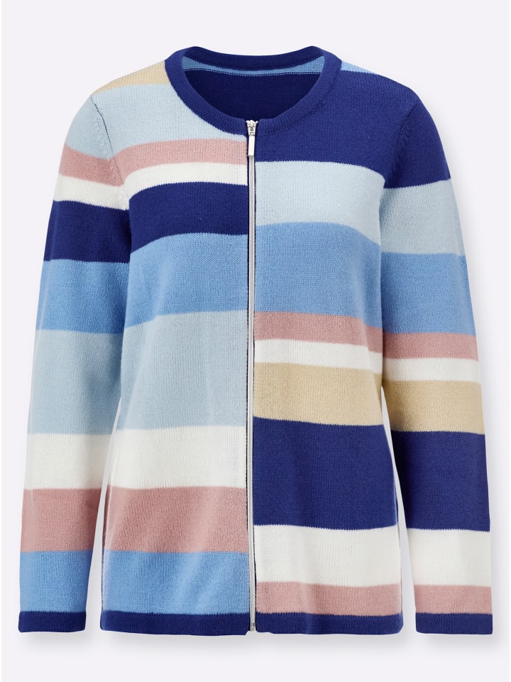 Блочные полосы в новом свете - и довольно дерзко смещены: этот кардиган очаровывает с первого взгляда! Жаккардовое качество. Застежка-молния во всю длину.