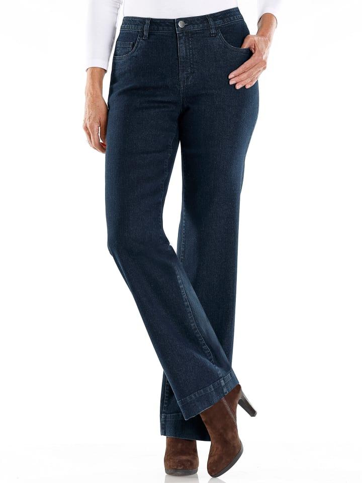 В этих джинсах вы всегда будете выглядеть безупречно благодаря эластичности и фигурному поясу! Проверенная модель с пятью карманами и модным широким кроем. Застежка на пуговицу и молнию, а также шлевки для ремня. Ширина до щиколотки примерно 50 см. Без ремня.