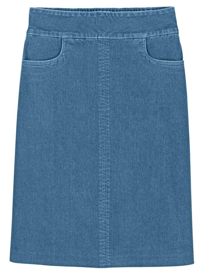 Изящный А-образный силуэт создает красивый силуэт этой джинсовой юбки. Сзади - невероятно удобный эластичный пояс. Высокий клапан спереди обеспечивает прекрасный скрытый эффект. Два закругленных кармана спереди.