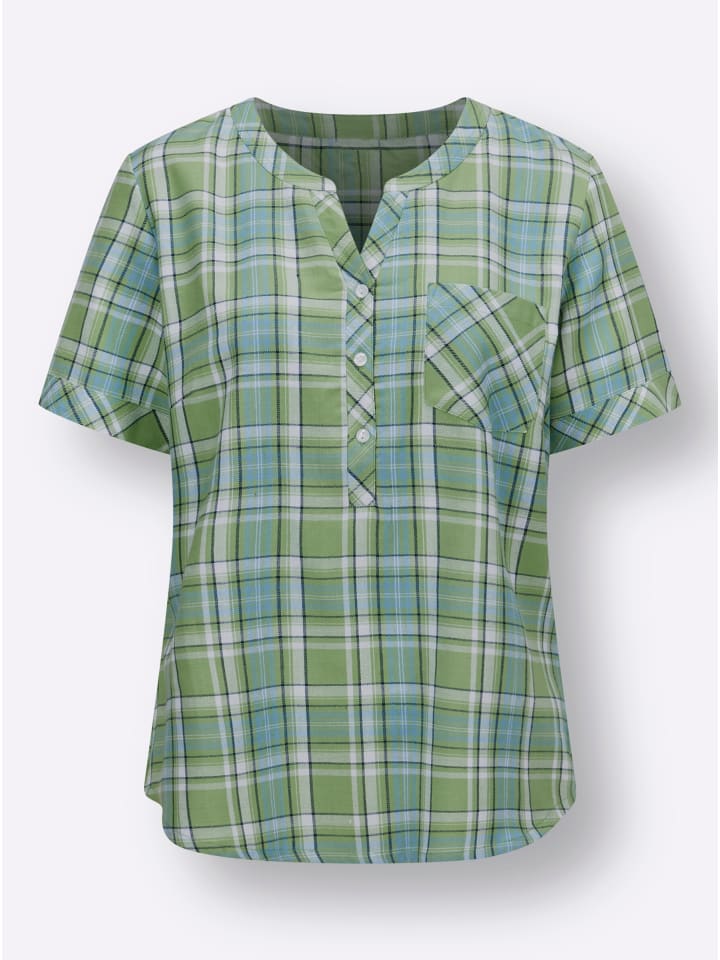 Глоток свежего воздуха для вашего гардероба! Эта клетчатая блузка с рисунком, окрашенным в пряже, выполнена на чистом хлопке. Круглый вырез горловины с небольшим V-образным вырезом и короткой планкой на пуговицах, нагрудный карман и имитация манжет. Сзади кокетка, а подол слегка закруглен.