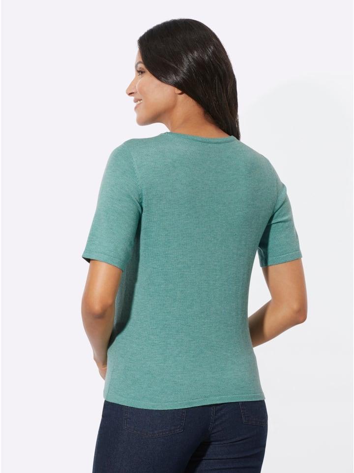 Этот модный пестрый свитер с короткими рукавами, который можно носить отдельно или как нижнюю рубашку, всегда впечатляет своей невероятной мягкостью, выполнен из вискозы и кашемира. Круглый вырез.