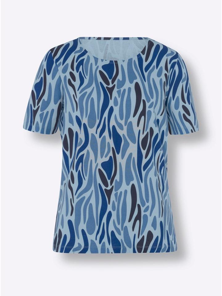 Эта рубашка с круглым вырезом и принтом тоже достойна вашего гардероба. С короткими рукавами.