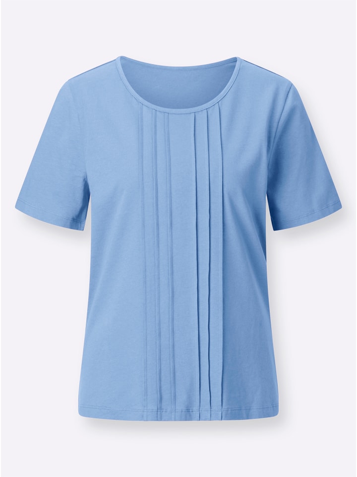 Эта рубашка с коротким рукавом всегда будет удачным дополнением к любому наряду. Кант спереди играет декоративную роль и визуально удлиняет фигуру. Круглый вырез горловины.