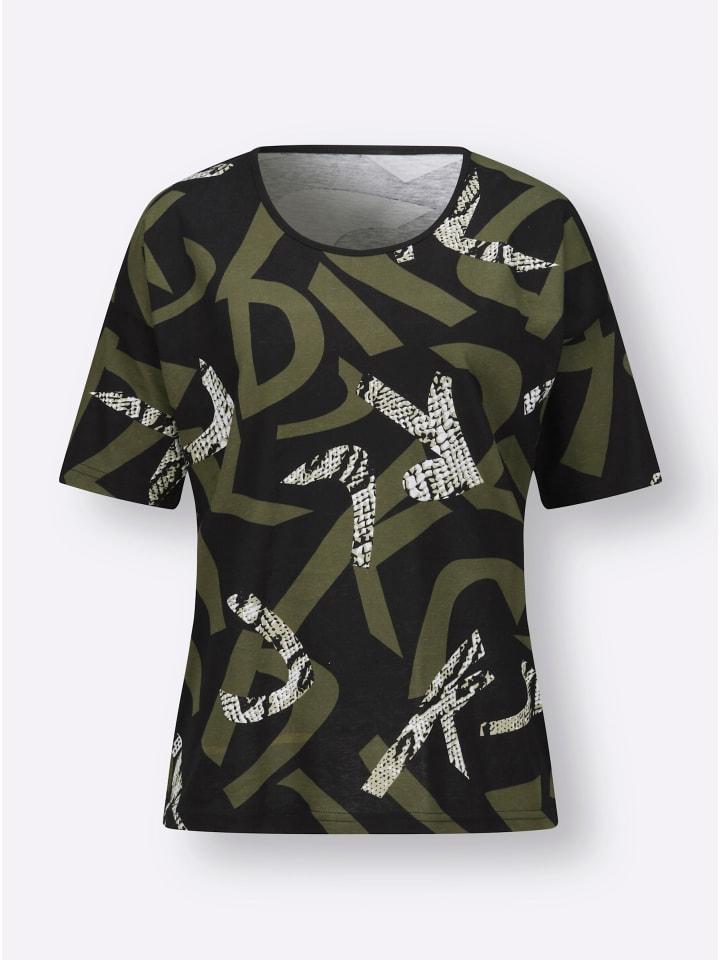 Незаменимая вещь для всех модниц: эта рубашка с круглым вырезом и модным принтом по всей поверхности, включающим надписи и анималистичный принт. Контрастная окантовка на горловине, спущенные плечи и рукава до середины голени.