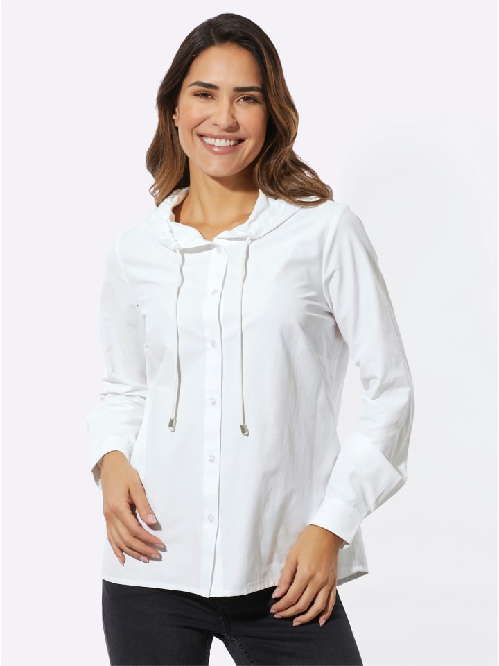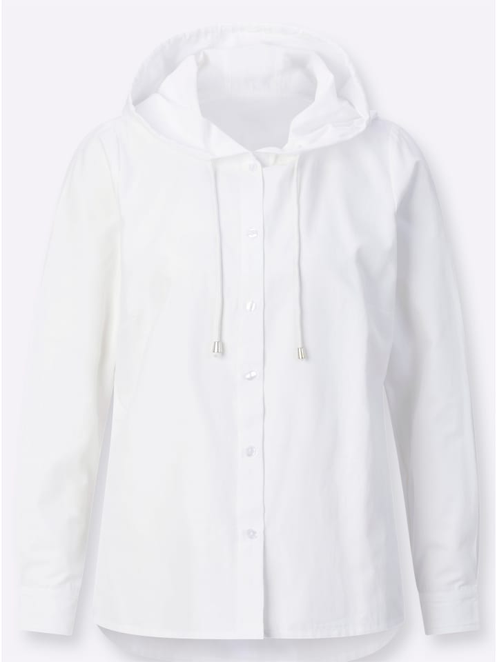 Эта блузка с длинными рукавами и капюшоном выглядит непринужденно и в то же время стильно. Она имеет пояс с завязкой, застежку на пуговицы по всей длине и вытачки на груди. Манжеты на пуговицах и удлиненный подол сзади. Удобная и простая в уходе блузка выполнена из смеси материалов.