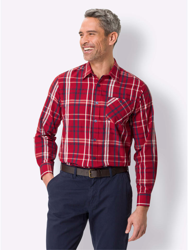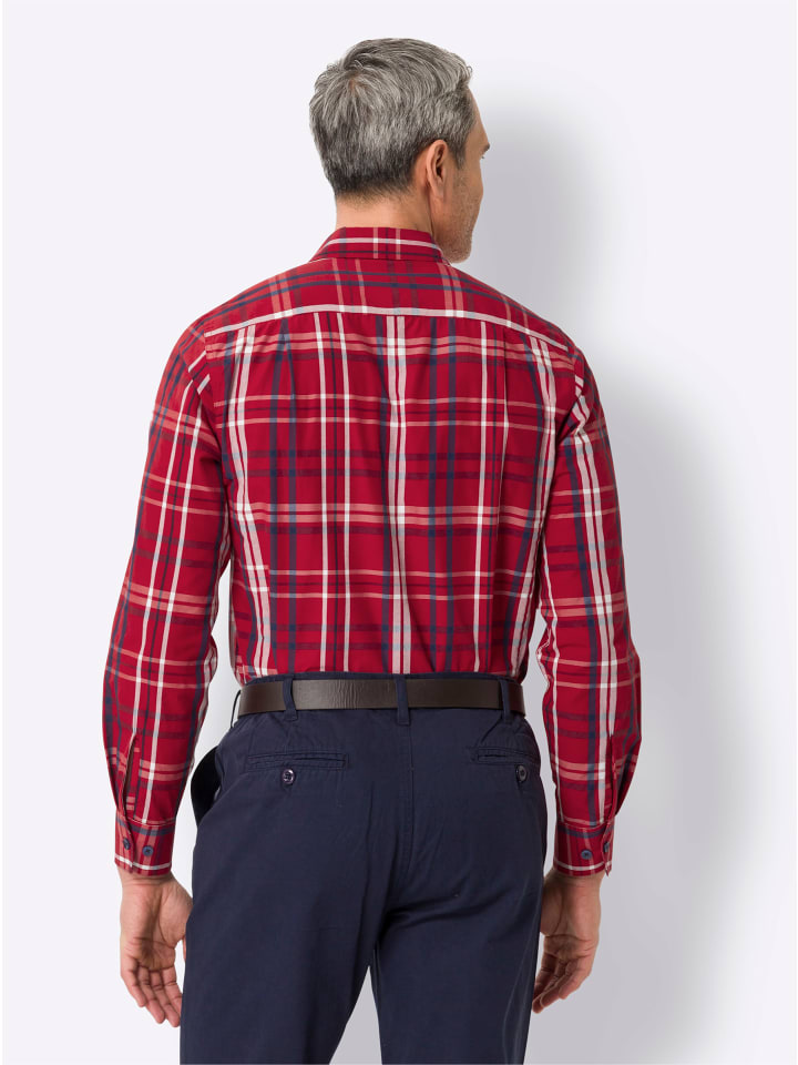 Рубашка с длинными рукавами в мужественный, узнаваемый клетчатый узор из комфортной хлопковой ткани. Отложной воротник, планка на пуговицах и один накладной нагрудный карман с застежкой на пуговицы. Длинные рукава с манжетами на пуговицах. Кокетка и складка сзади для идеальной посадки.