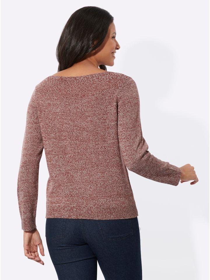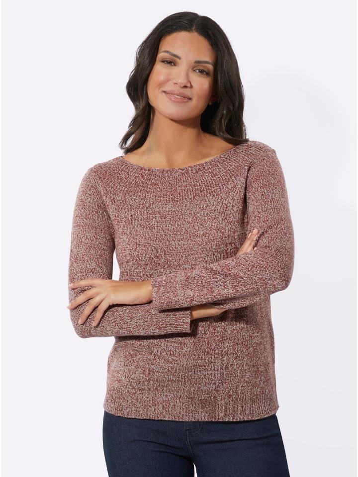 Джемпер с вырезом лодочкой, легкий в уходе, в модном меланжевом варианте. Изящная деталь - тонкий вязаный узор на горловине. Ребристая резинка на длинных рукавах реглан и по низу. Тщательно сшит по фигуре.