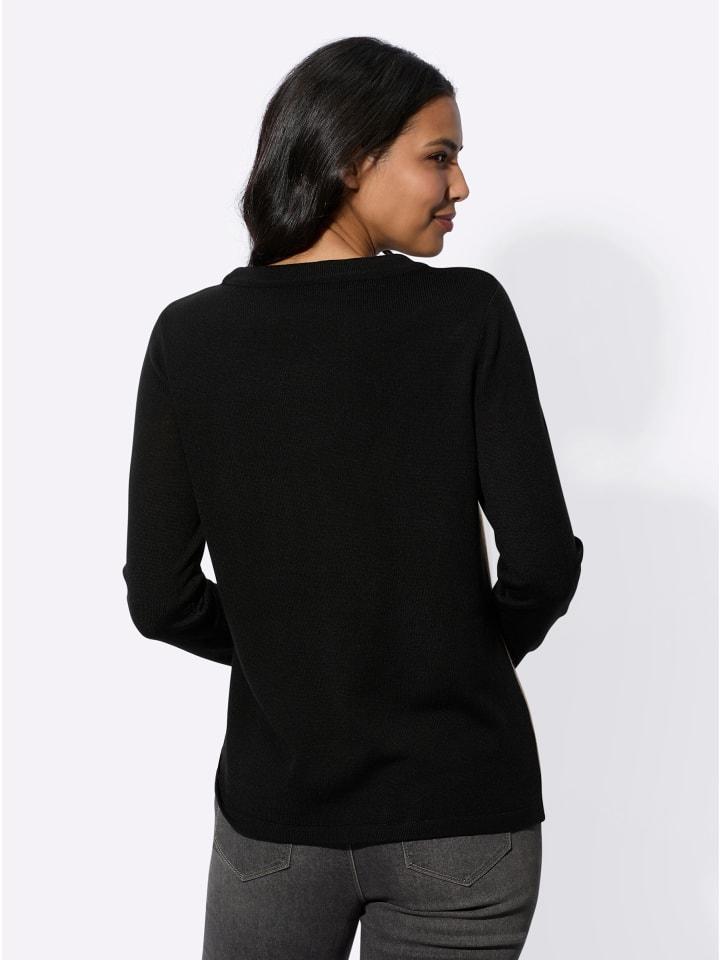 В этом свитере с длинными рукавами и цветовым блоком вы будете в тренде! Круглый вырез горловины с кулиской, люверсами и завязкой.