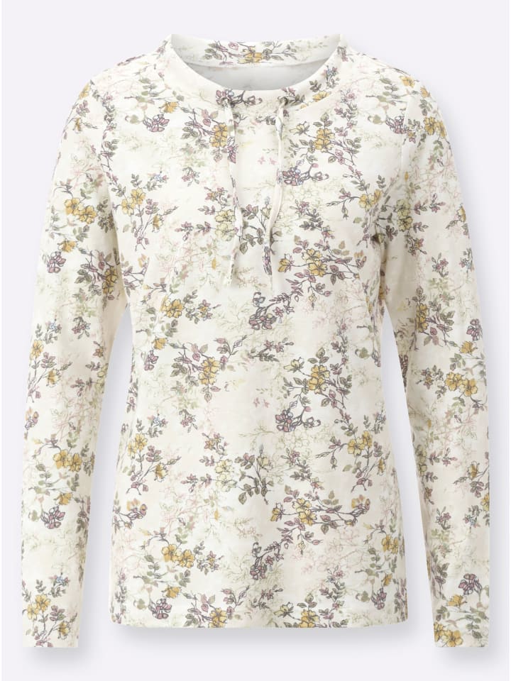 Романтика или спорт? И то, и другое. Эта рубашка с длинными рукавами расцветает для вас круглый год. Спортивная деталь - круглый вырез горловины с напечатанным галстуком.