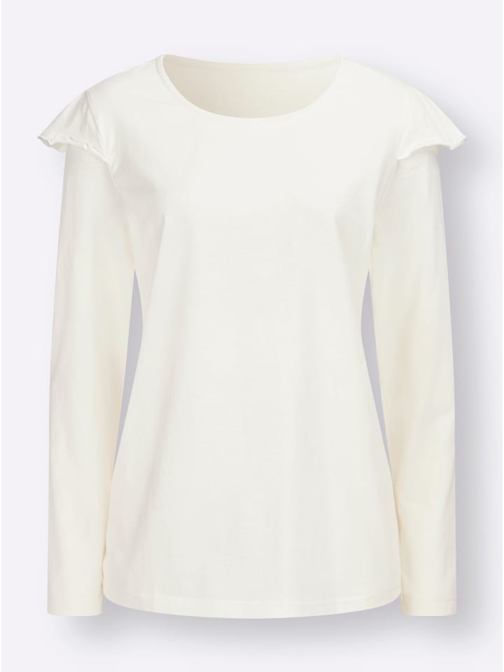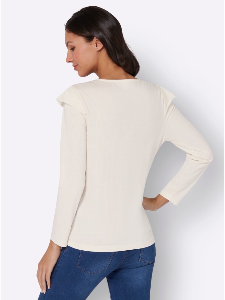 Хотите новую любимую вещь? Вот она: невероятно удобная рубашка с длинными рукавами и эффектными рукавами-крылышками. Круглый вырез.
