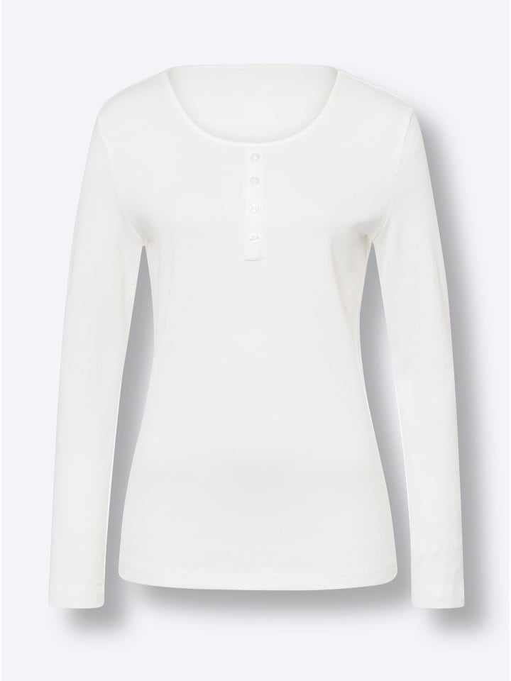Эта удобная рубашка с длинными рукавами отлично подходит для множества комбинаций. Привлекательный ребристый дизайн из приятной эластичной ткани. Круглый вырез горловины с декоративной планкой с пуговицами в тон.