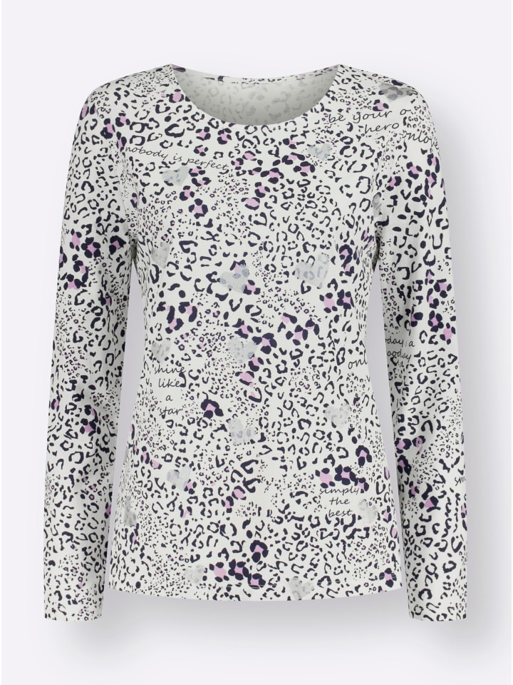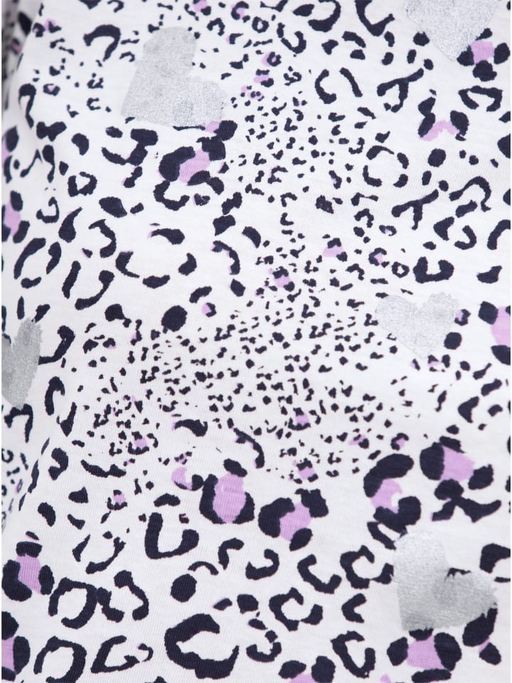 Эта рубашка с длинными рукавами и круглым вырезом действительно привлекает внимание благодаря эффектному сочетанию сплошного анималистичного принта и блестящего принта в виде сердечек спереди. Изготовлена из приятного для кожи материала.