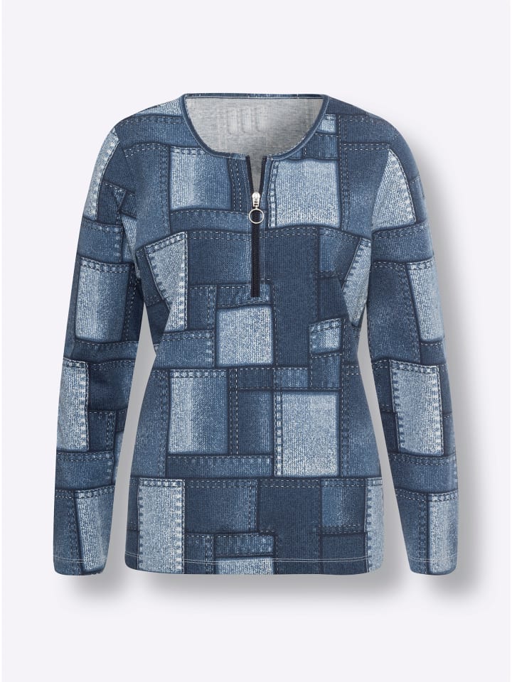 Эта рубашка с длинными рукавами, выполненная в ярком лоскутном стиле, привлечет внимание и добавит изюминку вашему образу. Короткая молния на горловине.