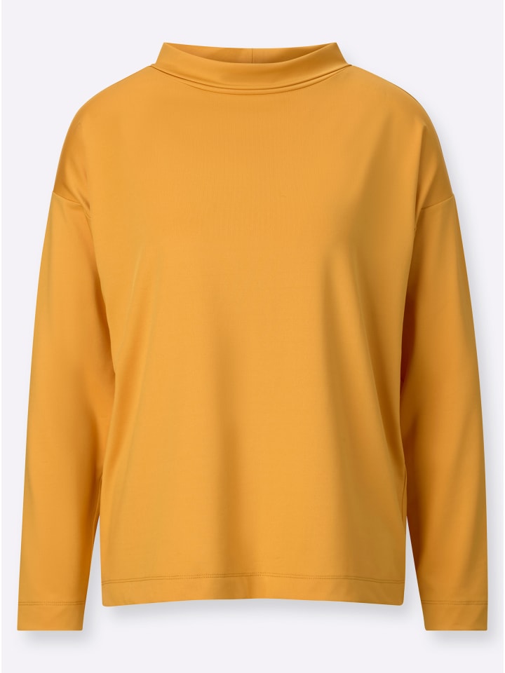 Спина, полная восторга: эта рубашка с длинными рукавами впечатляет дерзким разрезом и декоративной планкой с пуговицами сзади! Непринужденный образ благодаря вырезу лодочкой, свободной водолазке и спущенным плечам.