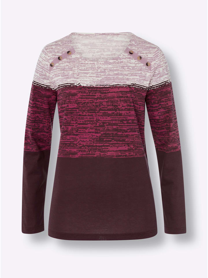Рубашка с круглым вырезом в универсальном дизайне с полосками и меланжевыми вставками. Декоративные планки с пуговицами, расположенные по диагонали.