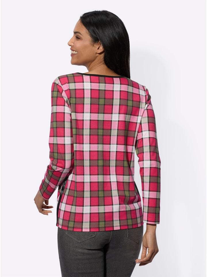 Клетка до самого горизонта. Клетчатый узор этой модной рубашки с длинными рукавами играет контрастами на круглом вырезе и вдоль боковых швов.