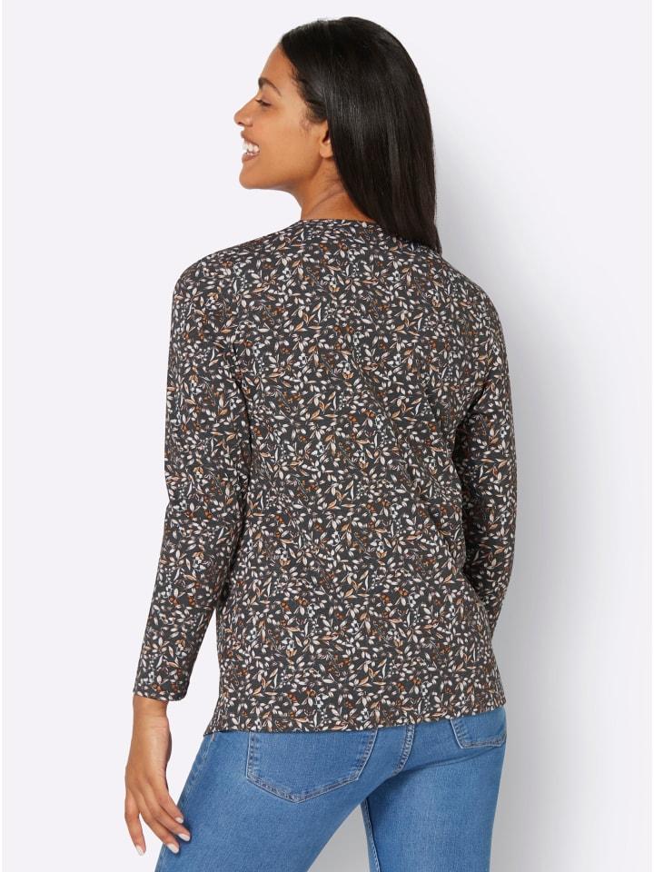 Великолепный модный партнер по великолепной цене: рубашка с длинными рукавами и цветочным принтом, слегка расклешенного кроя. Круглый вырез горловины со сборками.