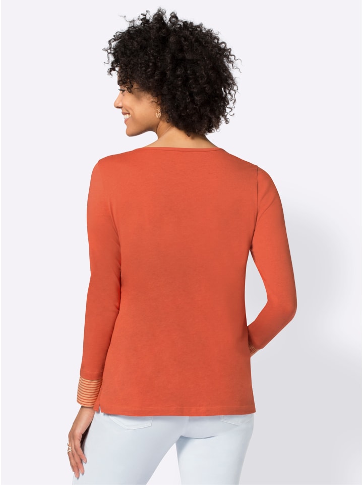 Повседневная рубашка в популярном многослойном стиле. Полосатая вставка на V-образном вырезе и рукавах выполнена из высококачественной пряжи, окрашенной в спортивном стиле.