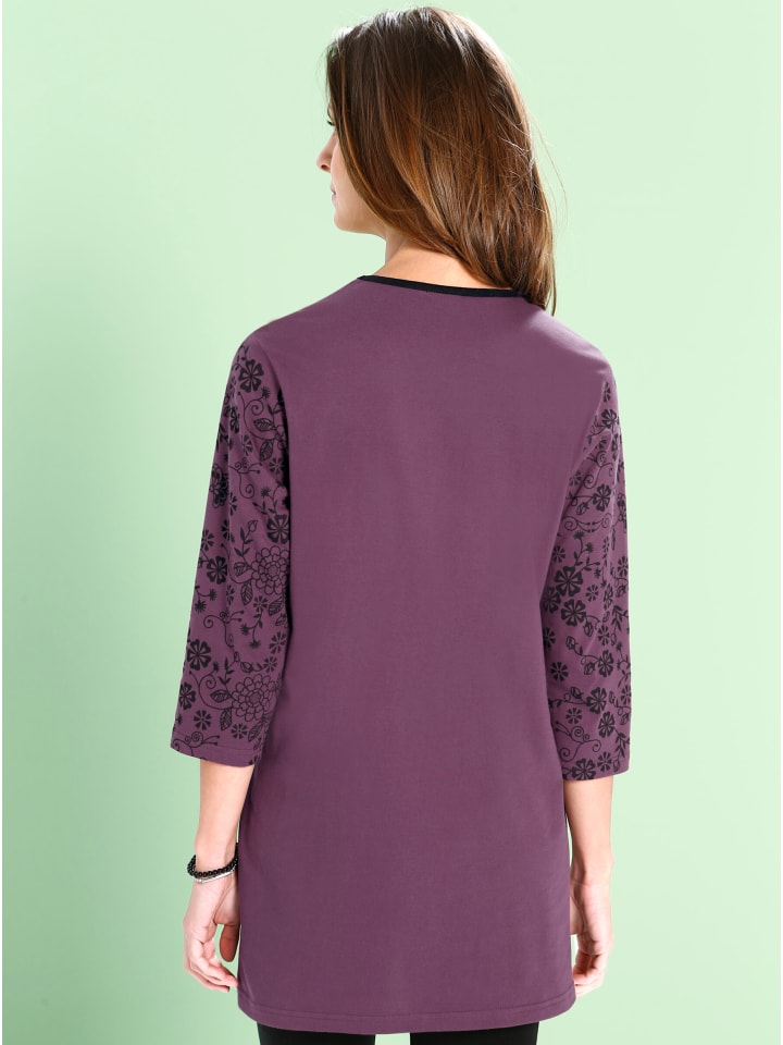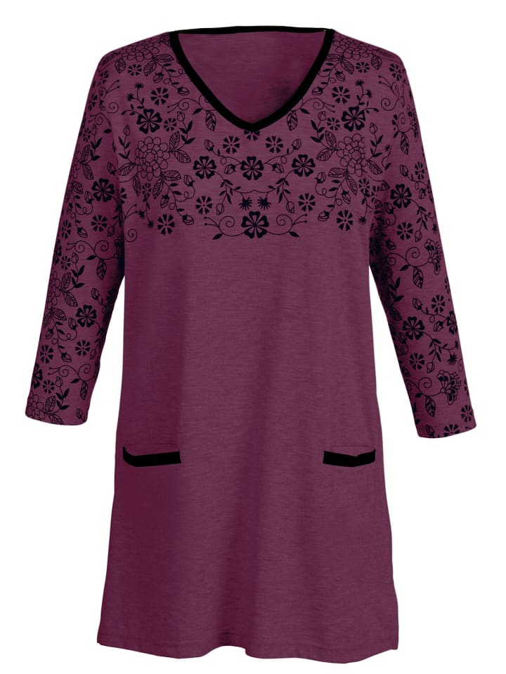 С определенной изюминкой: длинная рубашка с цветочным принтом на плечах и рукавах длиной 3/4. Два практичных кармана спереди и удобные разрезы по бокам.