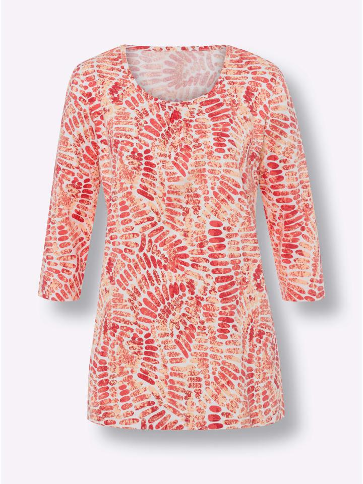 Как наряд становится центром внимания? Все просто: с помощью такого оригинального топа с длинными рукавами и принтом! Он имеет А-силуэт с плиссировкой спереди для комфортной посадки. Круглый вырез горловины с окантовкой и рукава длиной ¾.