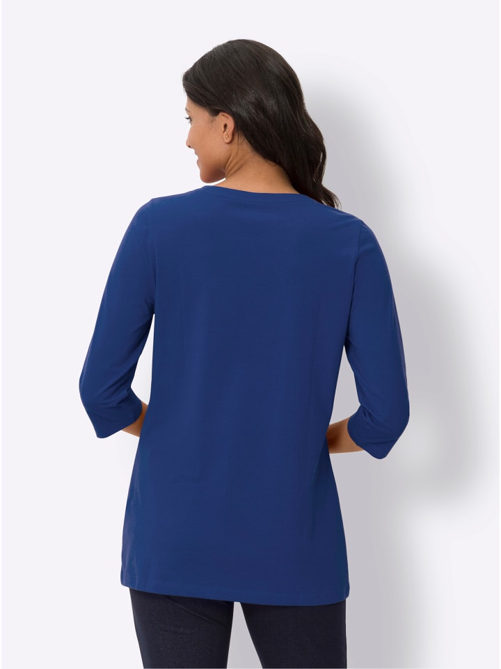 Отличная покупка! Этот топ с длинными рукавами впечатляет привлекательным цветочным принтом сбоку. Небольшой V-образный вырез украшен декоративной пуговицей. Рукава длиной 3/4.