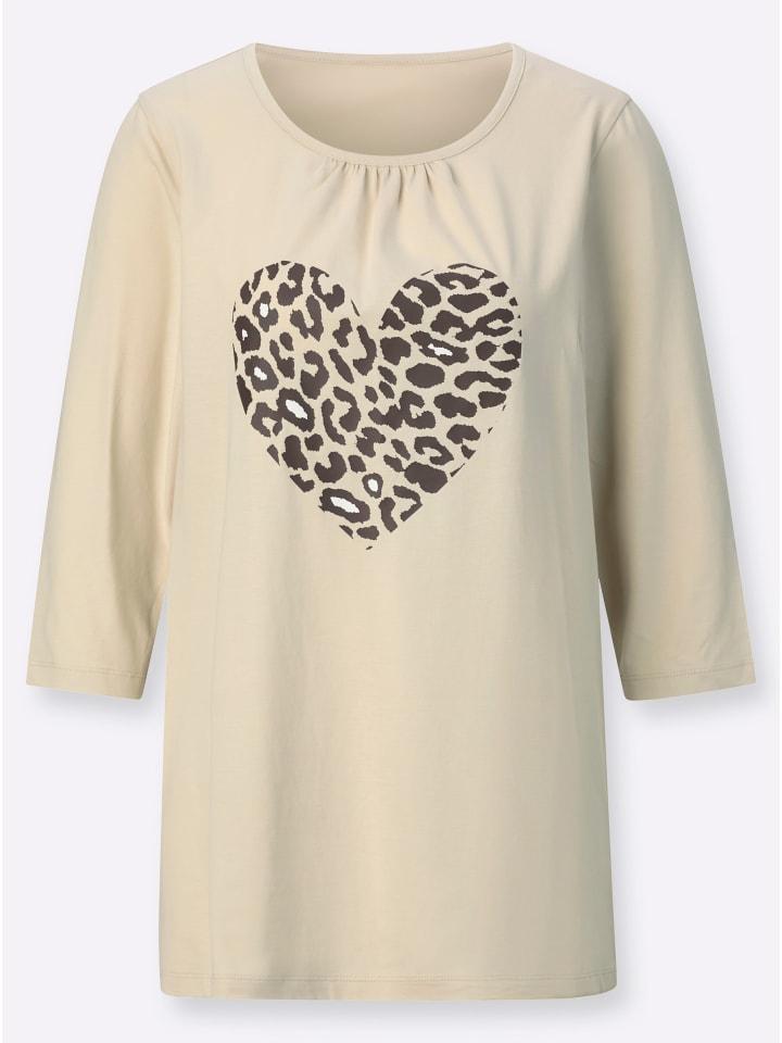 Модная вещь по низкой цене! Этот топ с длинными рукавами, подчеркивающий фигуру, украшен принтом в виде сердечек с анималистичным рисунком спереди. Круглый вырез горловины с отделкой, легкие сборки и рукава длиной 3/4.