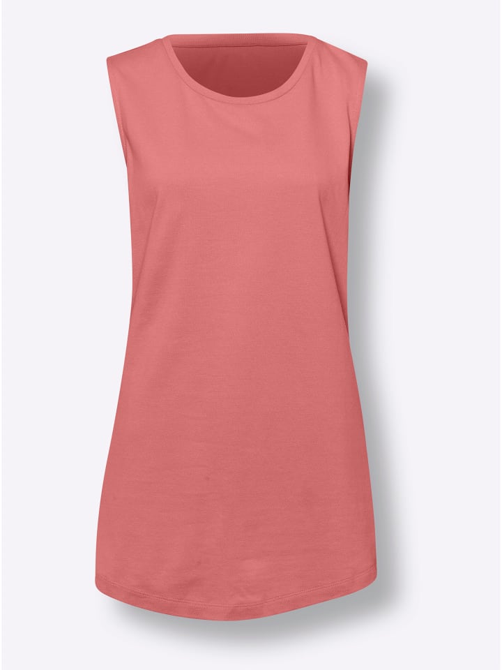 Длинный топ из пике, не требующего особого ухода. Удлиненный, слегка расклешенный крой прекрасно скрывает недостатки фигуры. Круглый вырез и закругленный подол.