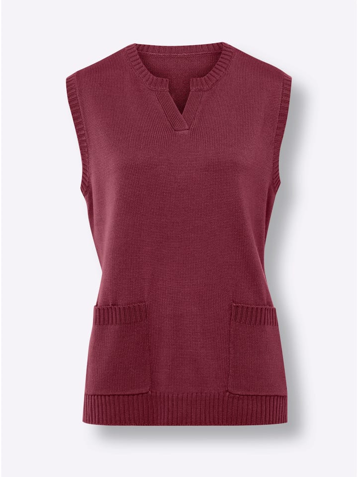 Универсальный, многофункциональный, простой в уходе: пуловер с небольшим разрезом на круглой горловине. 2 накладных кармана. Ребристые манжеты.