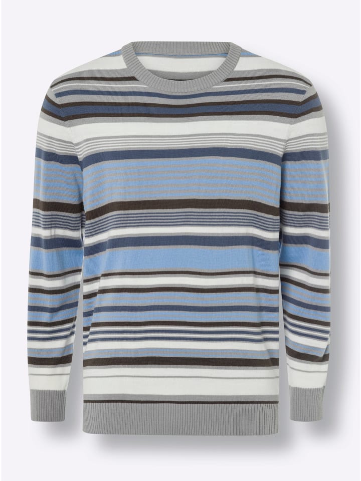 Этот свитер с круглым вырезом непременно порадует вас гармоничным полосатым узором. Рельефный вырез горловины и манжеты на длинных рукавах и подоле выполнены в контрастном однотонном цвете. Он выполнен из ткани, которая невероятно проста в уходе.