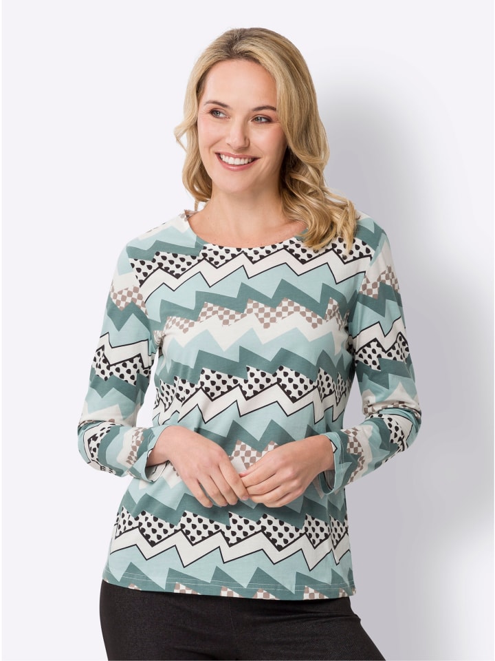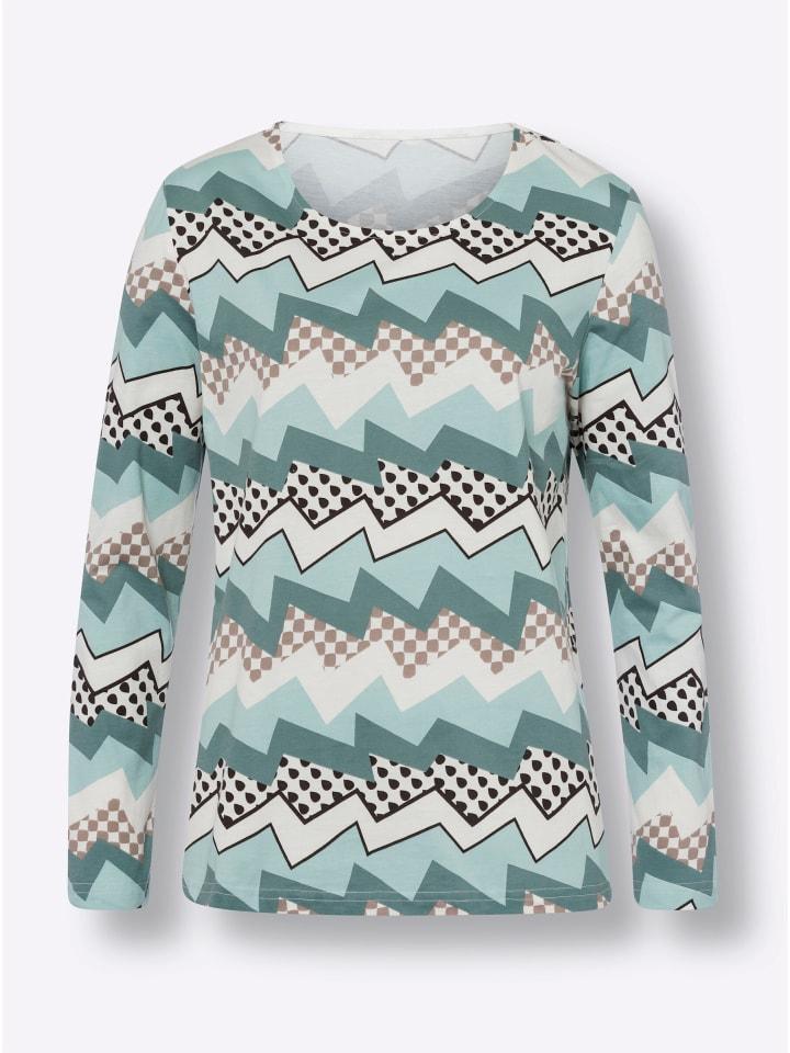 Напоминает дерзкие рисунки в стиле комиксов: рубашка с длинными рукавами и причудливым зигзагообразным узором по всей поверхности! Одинарный трикотаж.