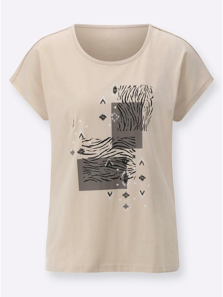 Модный этнический принт спереди придает этой рубашке особый шарм. Она отличается модным круглым вырезом и спущенными плечами.